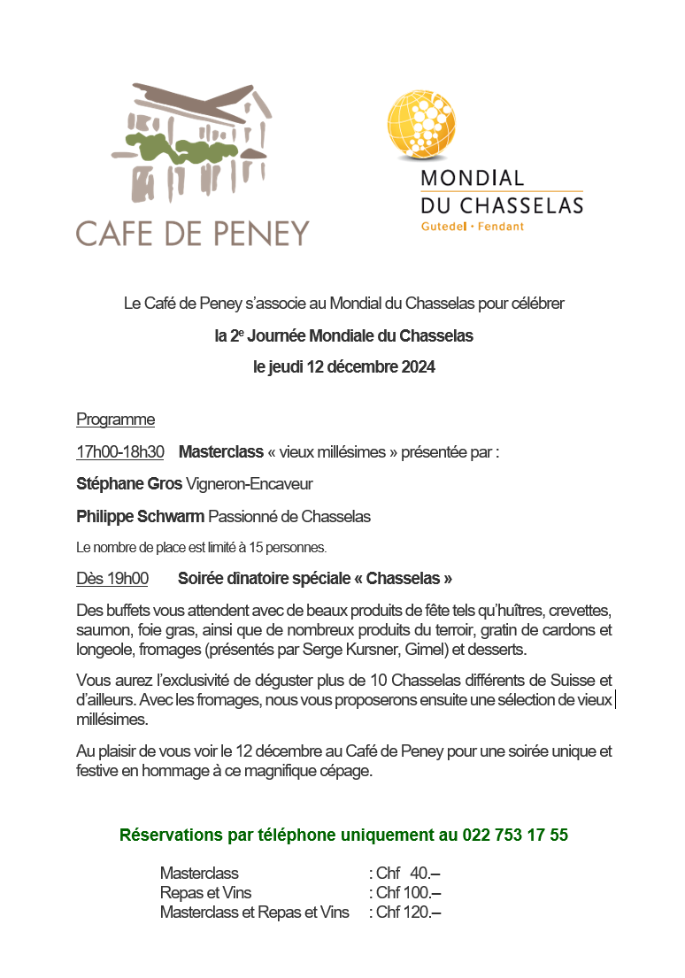 Le 12 décembre prochain, aura lieu la 2e journée Mondiale du Chasselas. À cette occasion, vous aurez l'opportunité de (re)découvrir toutes les facettes et les variétés de ce cépage tant aimé et apprécié autour de deux événements :